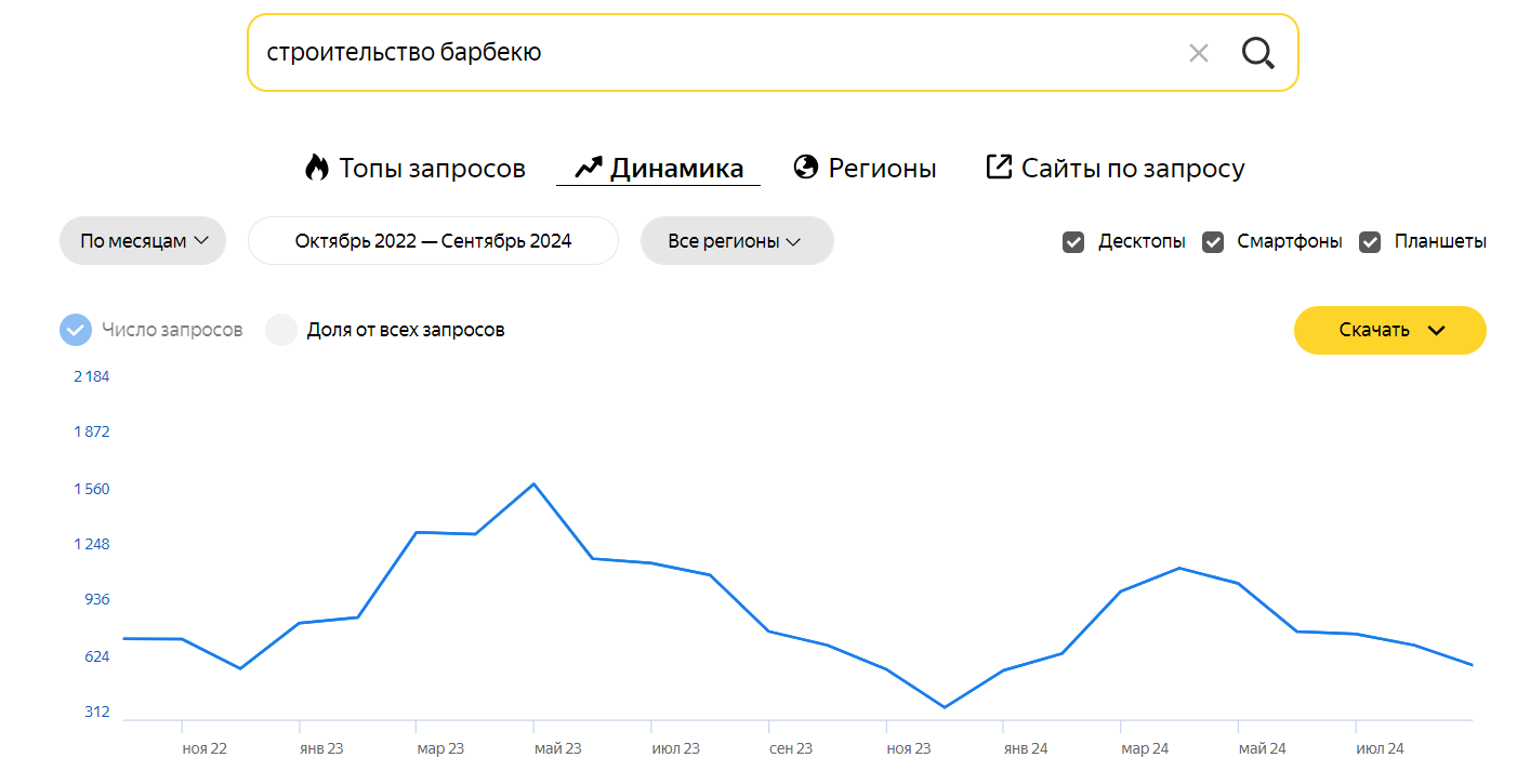 Динамика спроса в тематике "строительство барбекю"